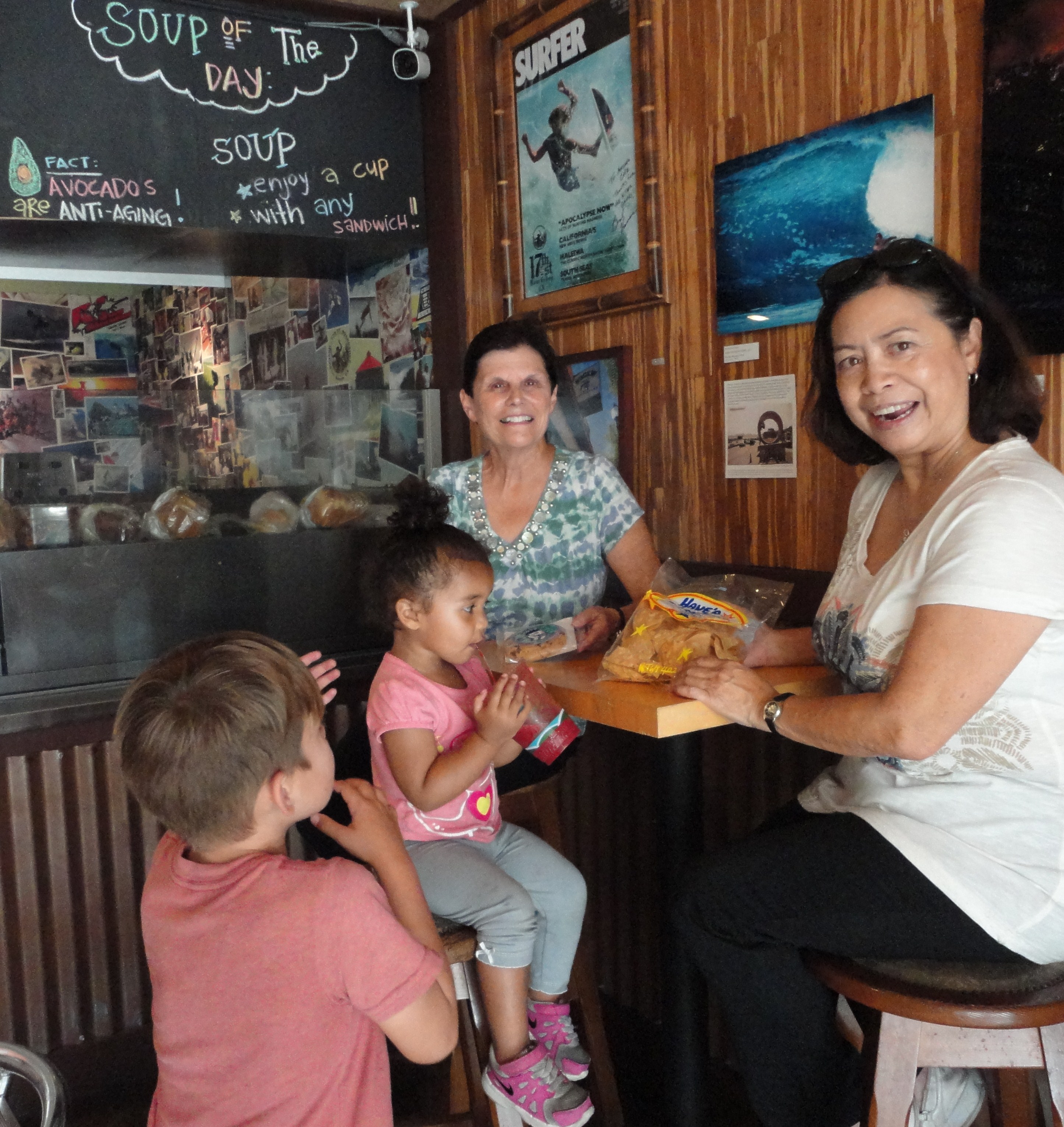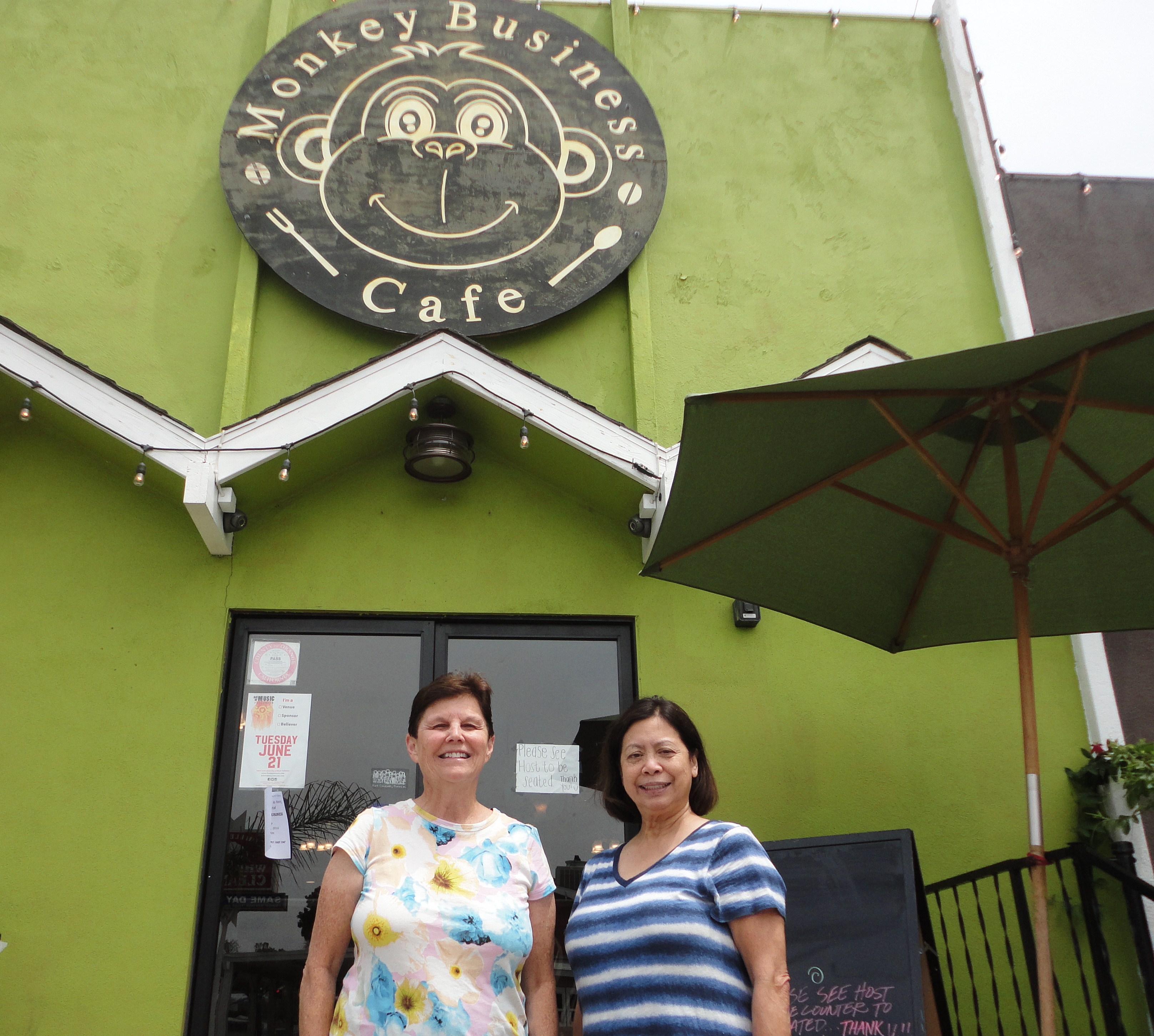 SurfWriter Girls Sunny Magdaug and Patti Kishel first heard about Avocado Café when we talked to the owner, Jon Vidales, at a Surfrider Foundation Huntington/Seal Beach Chapter beach cleanup.