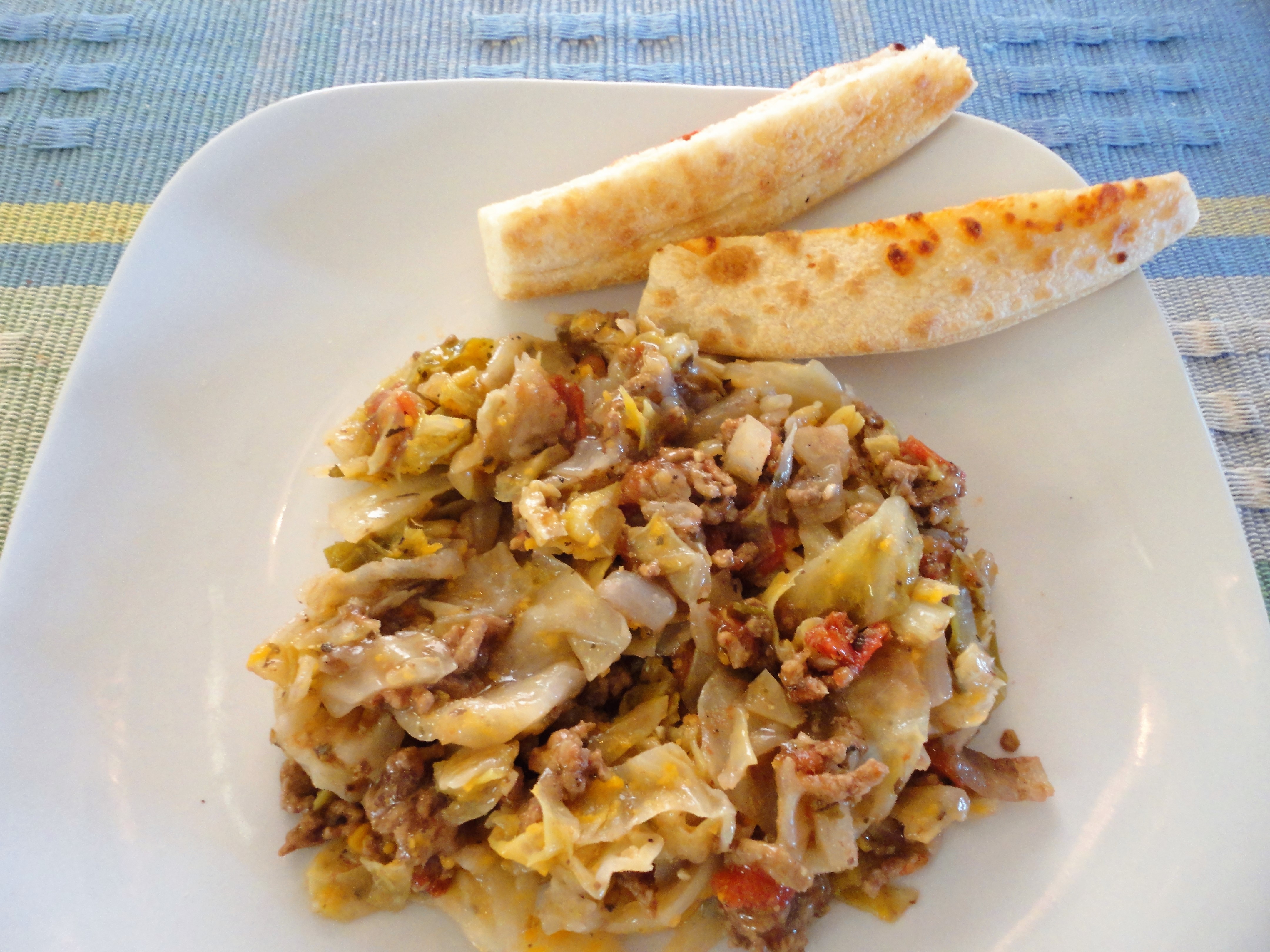 Cooking Hints: If the ground meat, onions, and peppers take up too much room in the frying pan, use two pans. This also enables the meat to brown more evenly. And, if you want to balance the heat with some sweet, do what we did and add a can of Bush’s baked Navy beans cooked in brown sugar to the pot.
